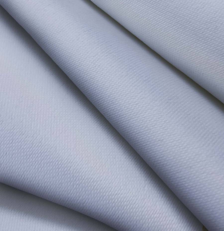 La tela base está impresa con el color liso a una sola cara por impresión digital textil, lo que le confiere una apariencia uniforme y duradera. Sus características incluyen una textura lisa y rígida, así como un tacto suave y visual opaco.