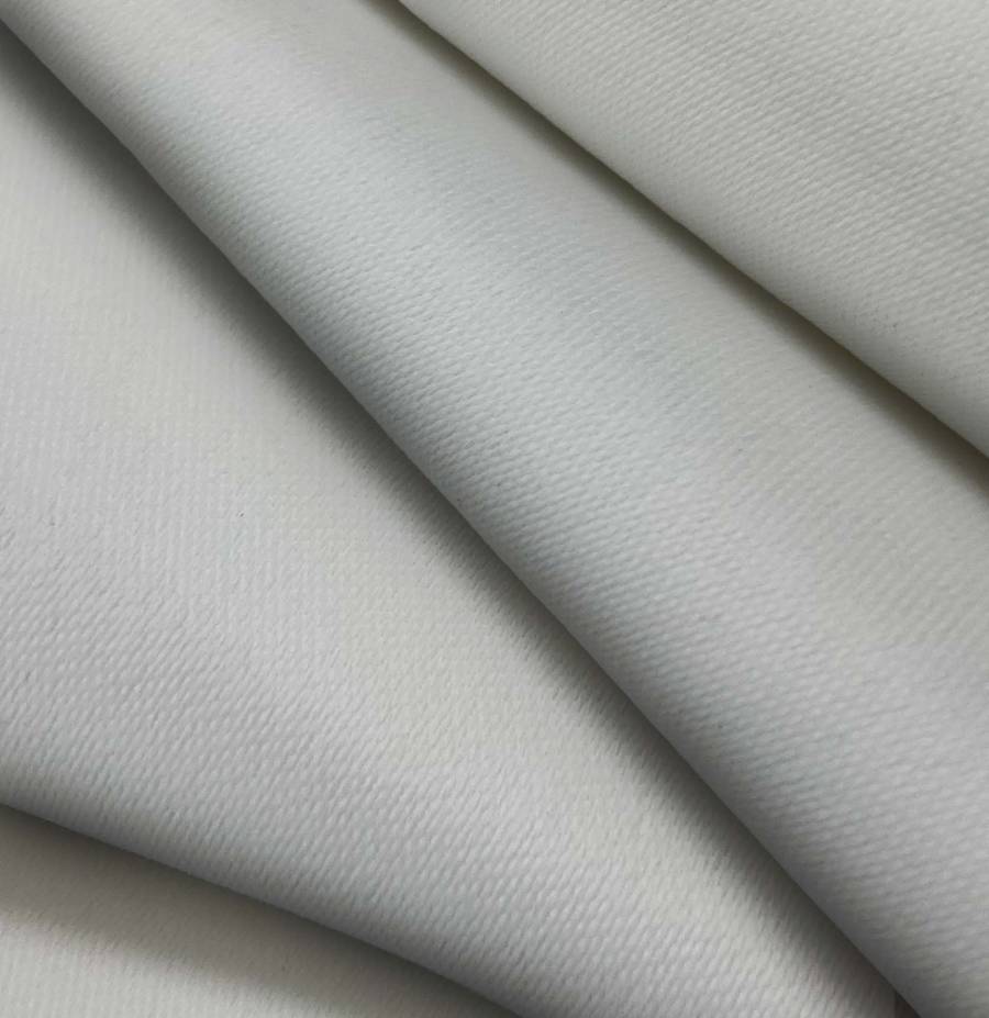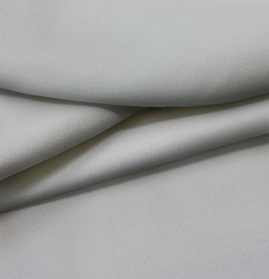 La tela base es una lona oscurante en color blanco puro, con un tono liso impreso de color gris delfín (CMYK: 41 32 33 11). Este color secundario simboliza la elegancia y la calma, combinando perfectamente con tonos neutros como el blanco, negro y beige. El tejido está impreso con este color a una sola cara por impresión digital textil, lo que garantiza una alta calidad y durabilidad en el color.