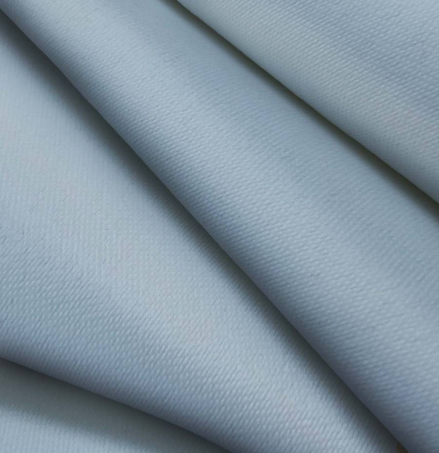 La tela base es una lona oscurante de color blanco puro, con un gramaje de 218 gr/m2 y un ancho de 160 cm. El color impreso es un gris pizarra luz, con una composición de tinta Cyan 57, Magenta 38, Yellow 28 y Black 11 en el modelo CMYK. Este color secundario combina especialmente bien con tonos neutros como blanco, negro y gris, así como colores más vibrantes como amarillo o verde.