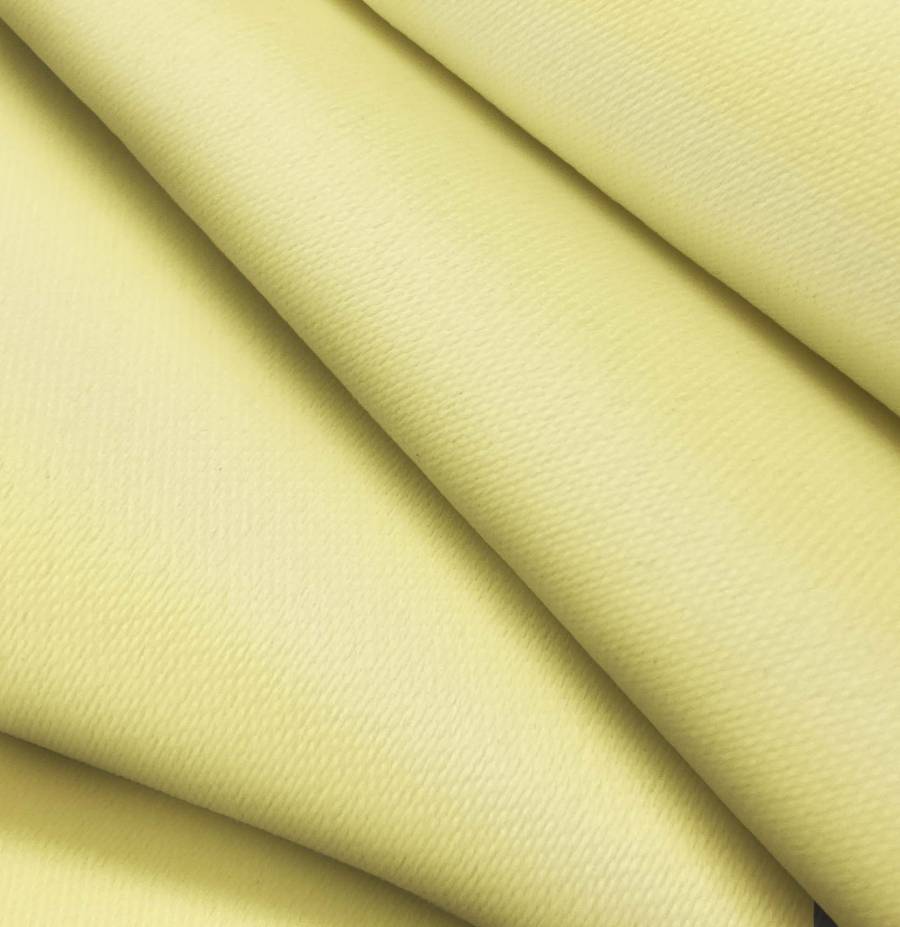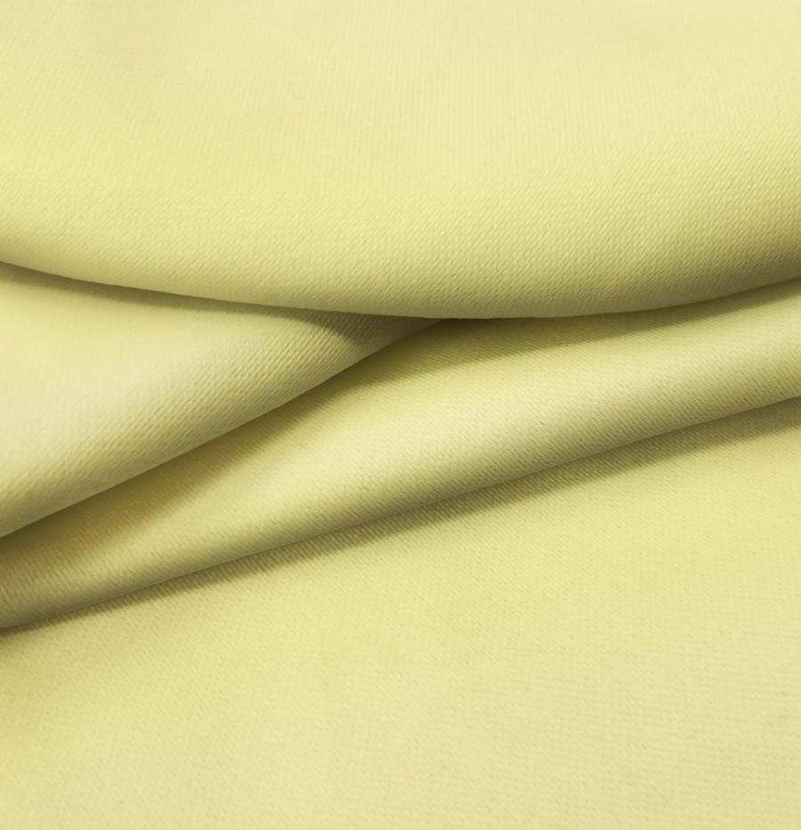 La tela base es una Lona Oscurante de color Amarillo Crema, con un CMYK de 10 10 59 0. Su color representa calidez y luminosidad, combinando bien con tonos neutros y pastel. El tejido está impreso con este color liso a una sola cara por impresión digital textil.