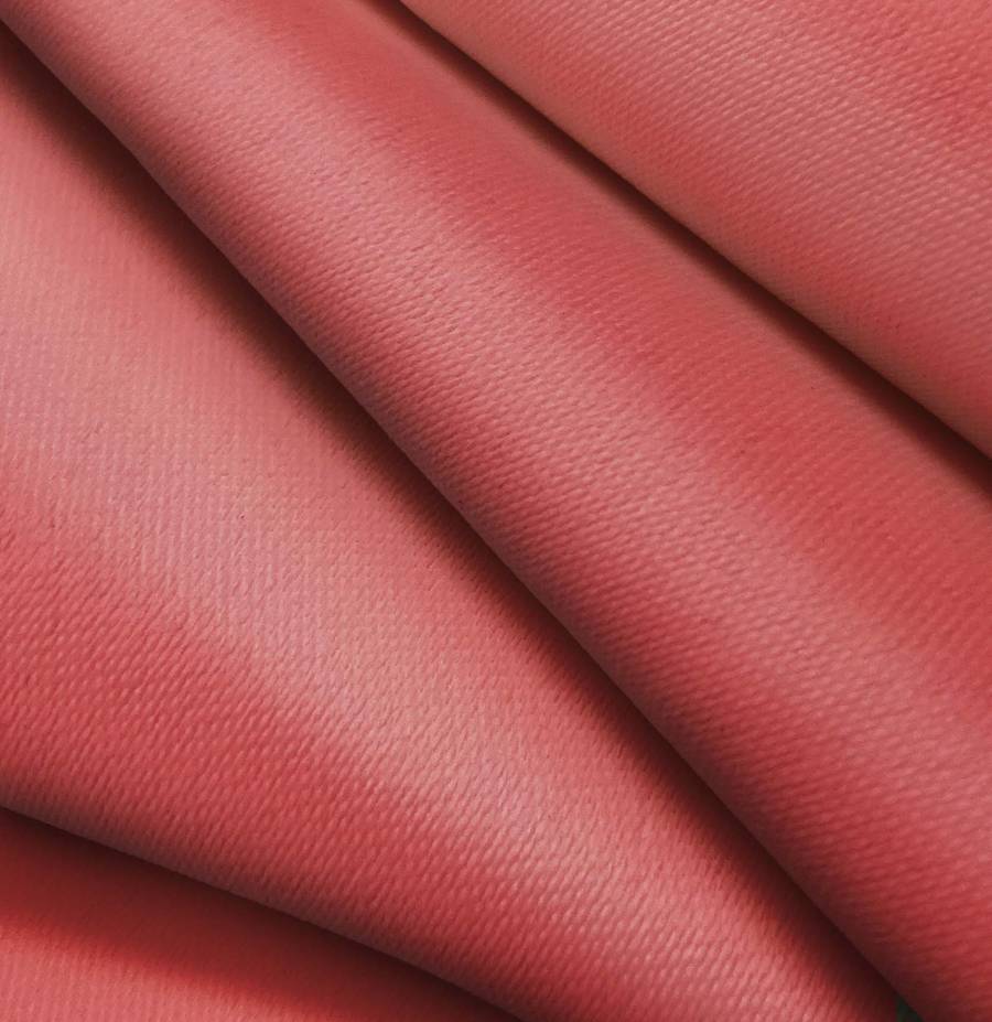 La tela base, Lona Oscurante - White Out, es un tejido técnico de poliéster con un gramaje de 218 gr/m2 y un ancho de 160 cm. El color impreso es un rojo con destello agridulce, con una combinación de tintas CMYK de 19 78 60 8. Este color secundario combina perfectamente con tonos neutros como blanco, gris y negro, resaltando su vibrante y llamativo color.
