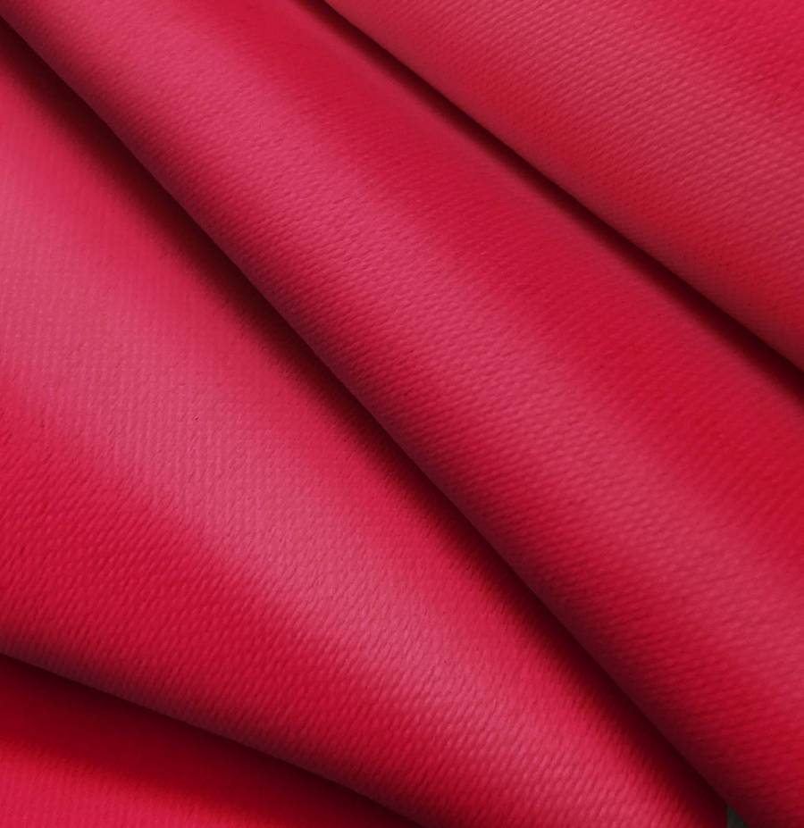 La tela base es una Lona Oscurante de color blanco, con un color liso impreso en tono Rojo Escarlata, representado por un CMYK de 18 100 77 8. Este color simboliza la pasión, el amor y la fuerza, combinando especialmente bien con tonos neutros como el gris y el blanco.