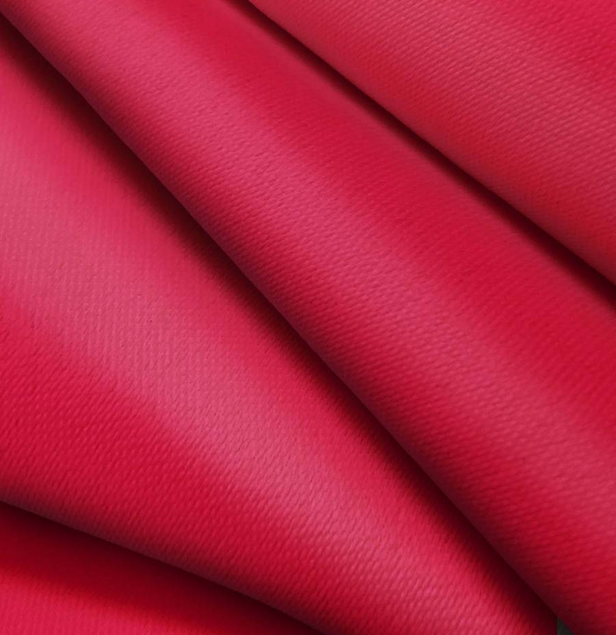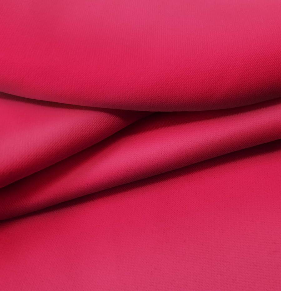La tela base es Lona Oscurante - White Out, con un color liso impreso en tonos de Rojo Frambuesa, con un CMYK de 15 100 74 6. Este color secundario se caracteriza por su intensidad y calidez, ideal para dar un toque vibrante y elegante a cualquier proyecto. Combina especialmente bien con tonos neutros como blanco, gris y negro para crear contrastes modernos y sofisticados.