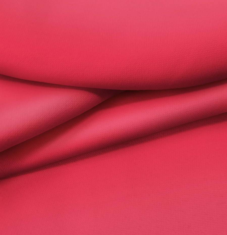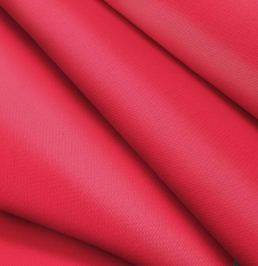 La tela base es Lona Oscurante en color White Out, con un color liso impreso en Rojo Rusty (CMYK: 7 93 66 1). Este color simboliza pasión y fuerza, y combina especialmente bien con tonos neutros como blanco, negro y gris.