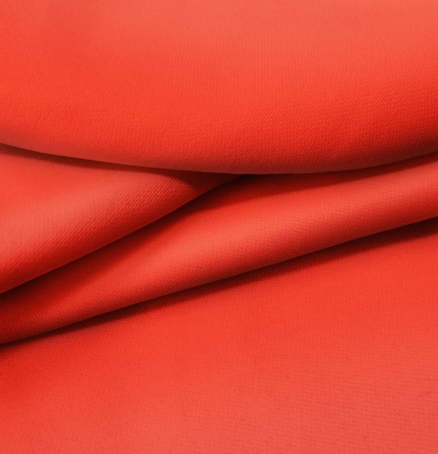 La tela base de esta descripción es la Lona Oscurante - White Out, un tejido técnico compuesto al 100% de poliéster con un gramaje de 218 gr/m2 y un ancho de 160 cm. El color liso impreso es un rojo intenso con una combinación de 89% de tinta magenta y 89% de tinta amarilla en el CMYK, lo que lo convierte en un rojo vibrante y llamativo. Este color secundario combina particularmente bien con tonos neutros como blanco, gris, negro y tonos tierra.