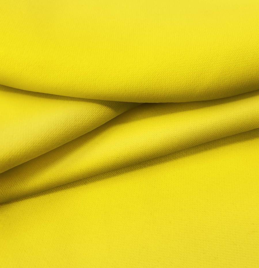 La tela base es Lona Oscurante - White Out, la cual tiene un color liso impreso en tono Amarillo Huevo con un valor CMYK de 0 16 91 0. Este color secundario simboliza la luz del sol y la vitalidad, y combina especialmente bien con tonos neutros como el blanco, el gris y el negro para crear un contraste impactante y elegante.