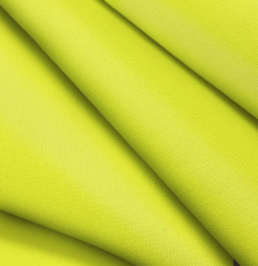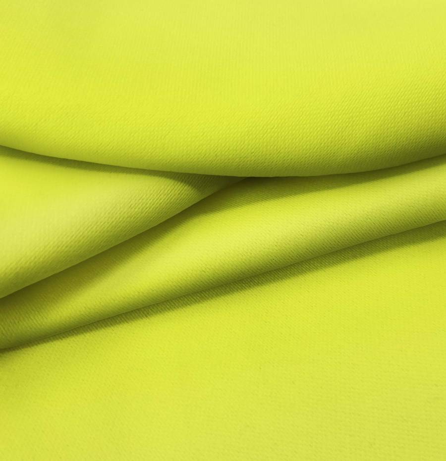 La tela base es Lona Oscurante - White Out, un tejido técnico de poliéster con un gramaje de 218 gr/m2 y un ancho de 160 cm. El color liso impreso es Verde Pera, con una combinación de tintas CMYK de 27 0 85 0. Este color secundario se caracteriza por su frescura y vitalidad, complementándose especialmente con tonos neutros como gris o blanco.