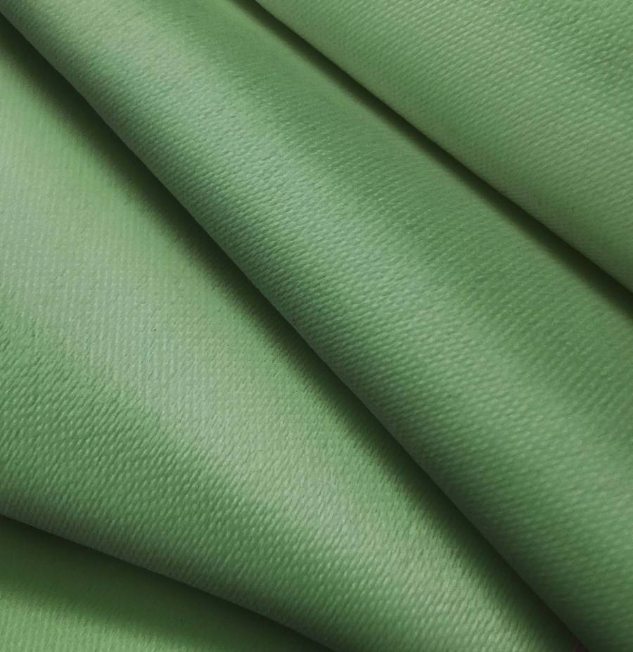 La tela base es Lona Oscurante - White Out, un tejido técnico de 100% poliéster con un gramaje de 218 gr/m2 y un ancho de 160 cm. Su color liso impreso es Verde Marchito, con una composición de tinta Cyan (65), Magenta (31), Yellow (72) y Black (14). Este color secundario combina especialmente bien con tonos tierra y neutros, creando una sensación de naturalidad y frescura.