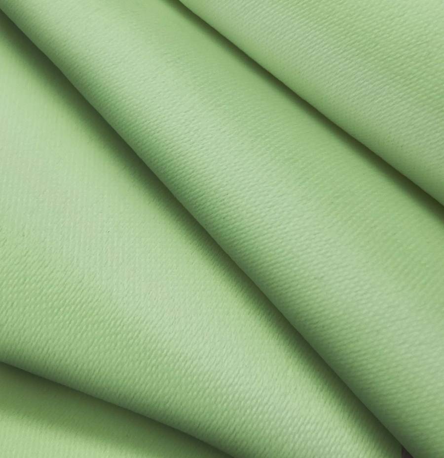 La tela base es Lona Oscurante - White Out, de color verde pálido con un CMYK de 53 17 63 2. Este color transmite calma y frescura, combinando bien con tonos neutros y tierra. La tela está impresa a una sola cara por impresión digital textil, lo que garantiza la durabilidad y fidelidad del color.
