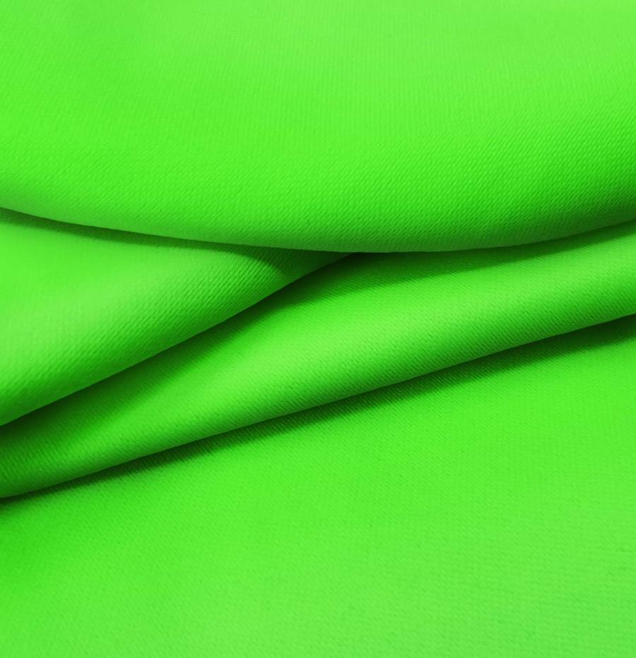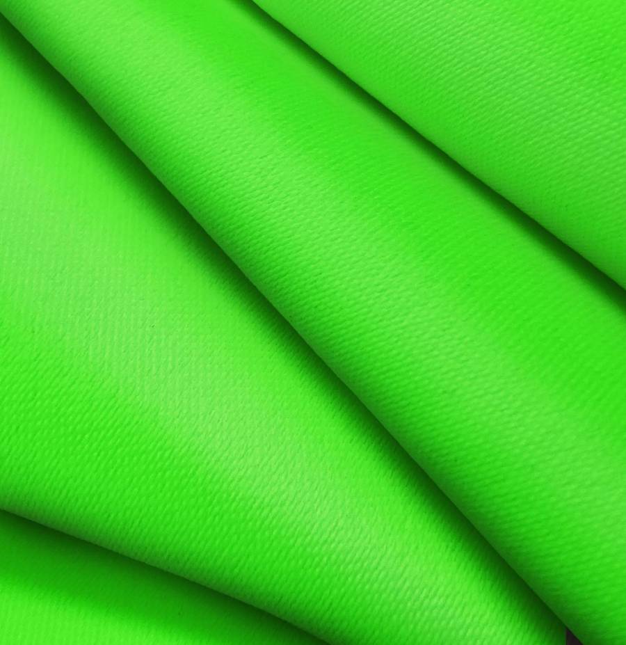 La tela base es Lona Oscurante - White Out, un tejido técnico de poliéster con un gramaje de 218 gr/m2 y un ancho de 160 cm. El color liso impreso es Verde Veneno, con una combinación de tinta Cyan 63, Magenta 0, Yellow 100, y Black 0, con un CMYK de 63 0 100 0. El color verde veneno es un tono vibrante y llamativo que combina muy bien con colores neutros como blanco, negro y gris, así como tonos complementarios como el morado y el azul.
