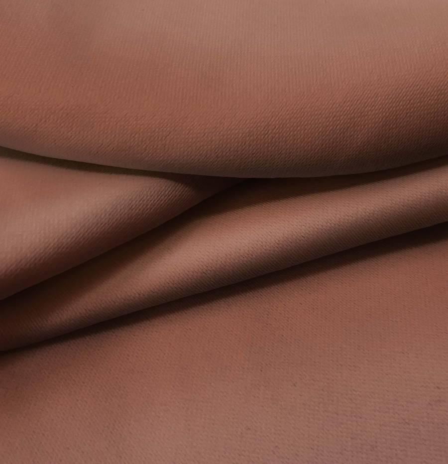 La tela base es Lona Oscurante - White Out, de color rojo ocre tostado con un CMYK de 36 71 75 50. Este color simboliza la pasión y la calidez, combinando muy bien con tonos neutros como el blanco, beige y gris.