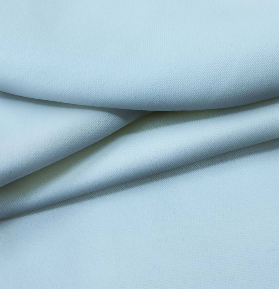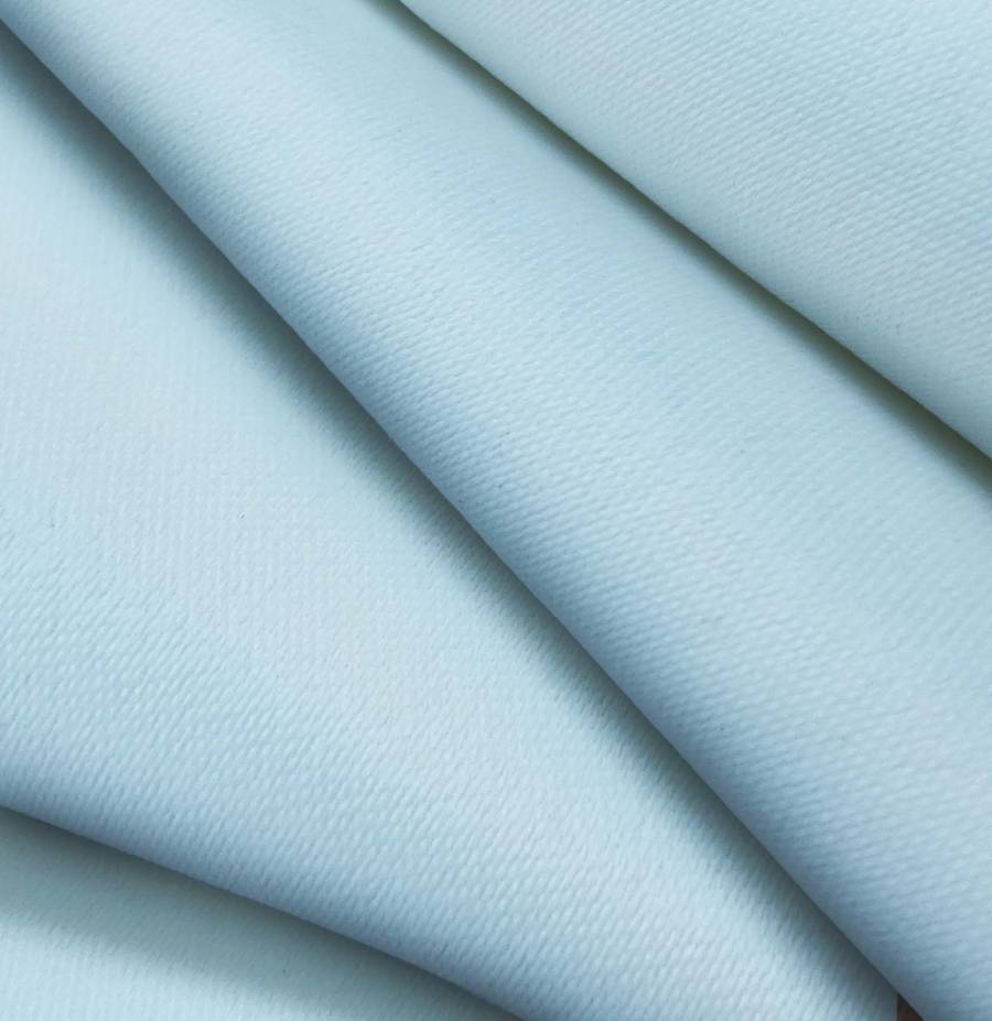 La tela base, Lona Oscurante - White Out, es un tejido técnico de poliéster con un gramaje de 218 gr/m2 y un ancho de 160 cm. El color liso impreso es Azul Ángel, con un CMYK de 43 13 7 0. Este color se caracteriza por su tonalidad suave y relajante, que combina muy bien con tonos neutros como blanco, gris o beige.