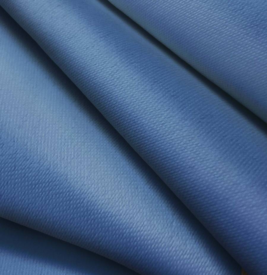 La tela base es Lona Oscurante - White Out, un tejido técnico de poliéster con un gramaje de 218 gr/m2 y un ancho de 160 cm. El color liso impreso es Azul Cerámica de Delft, con un CMYK de 83 60 23 7. Este color es un azul intenso y vibrante, que combina especialmente bien con tonos neutros como el blanco y el gris, así como con otros tonos de azul más claros.