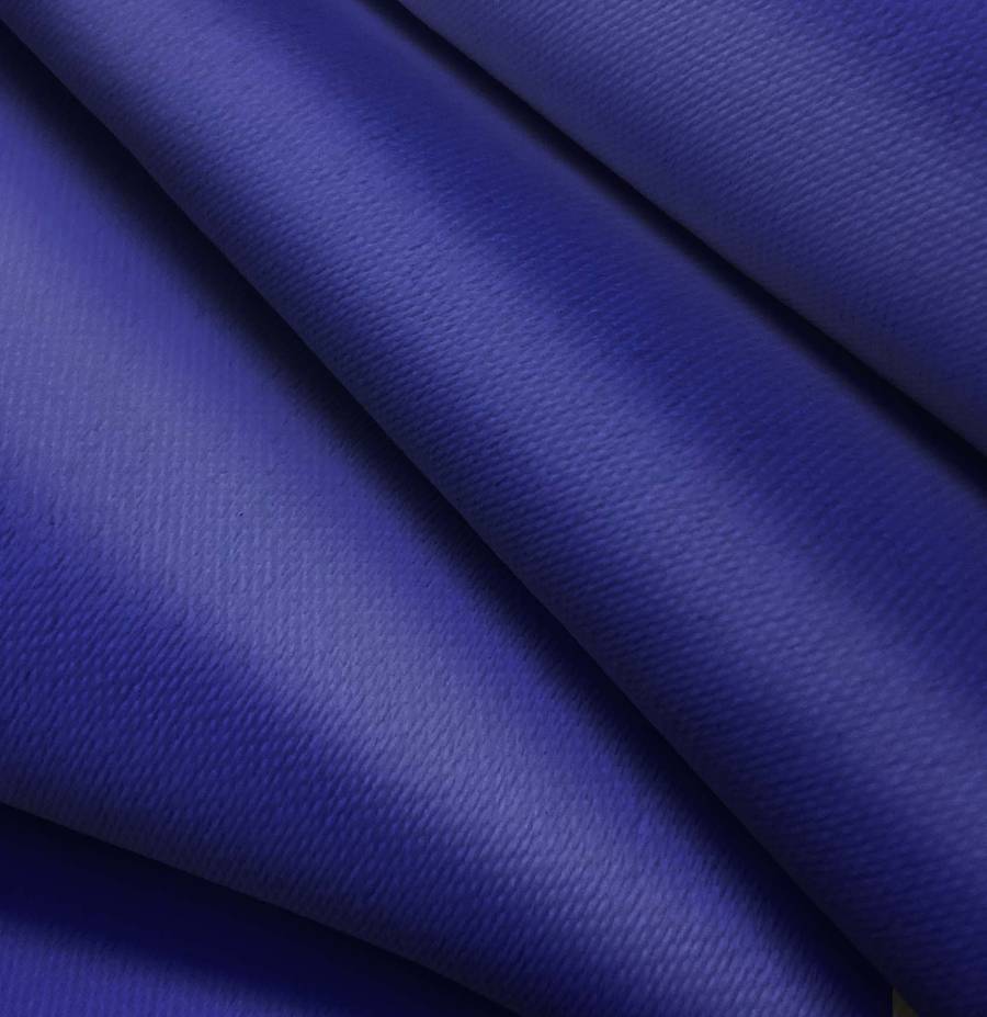 La tela base es Lona Oscurante - White Out, un tejido técnico de poliéster con un gramaje de 218 gr/m2, ancho de 160 cm, liso, rígido y opaco. El color liso impreso es Azul Medianoche (CMYK: 100 95 29 14) y combina perfectamente con tonos neutros como blanco, gris y negro.
