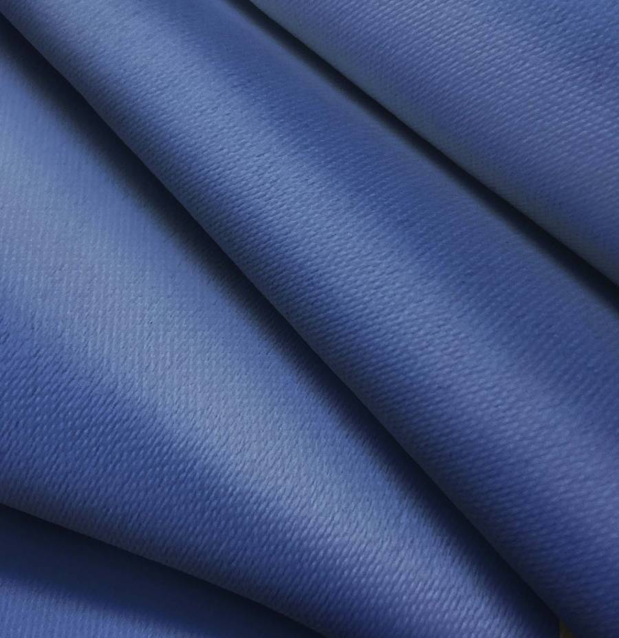 La tela base, Lona Oscurante - White Out, es un tejido técnico de poliéster con un gramaje de 218 gr/m2 y un ancho de 160 cm. El color liso impreso es Azul Oriente, con un CMYK de 89 73 21 6, que se caracteriza por ser un azul profundo y vivo. Combina muy bien con colores neutros como el blanco, el gris y el negro, así como con tonos más vibrantes como el amarillo y el naranja.