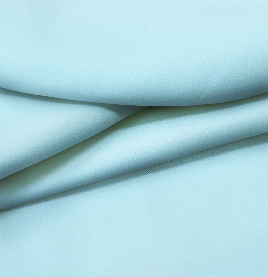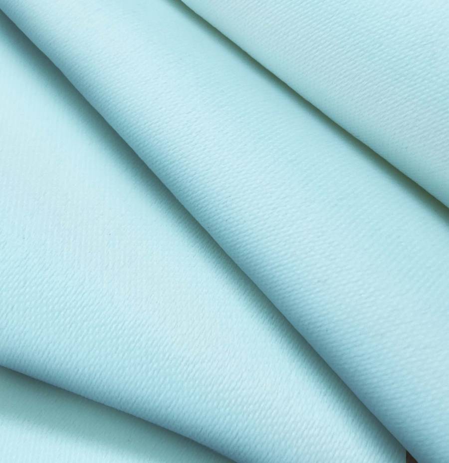 La tela base utilizada es Lona Oscurante - White Out, de composición 100% poliéster, con un gramaje de 218 gr/m2 y un ancho de 160 cm. El color liso impreso es Azul Pálido, con un CMYK de 37 0 2 0. Este color se caracteriza por ser suave y relajante, ideal para crear ambientes serenos y tranquilos. Combina muy bien con tonos neutros como blanco, gris y beige, así como con tonos tierra como marrón y verde.