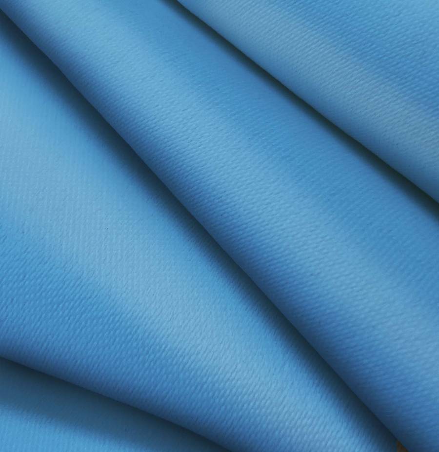 La tela base de esta descripción es la Lona Oscurante - White Out, la cual es de tipo Tejido Técnico de poliéster con un color liso impreso en azul pavo, reflejando un CMYK de 77 46 14 2. Este color azul pavo es profundo y vibrante, con un tono elegante que combina perfectamente con colores neutros como grises o blancos, y también resalta con tonos tierra como marrones o beige.