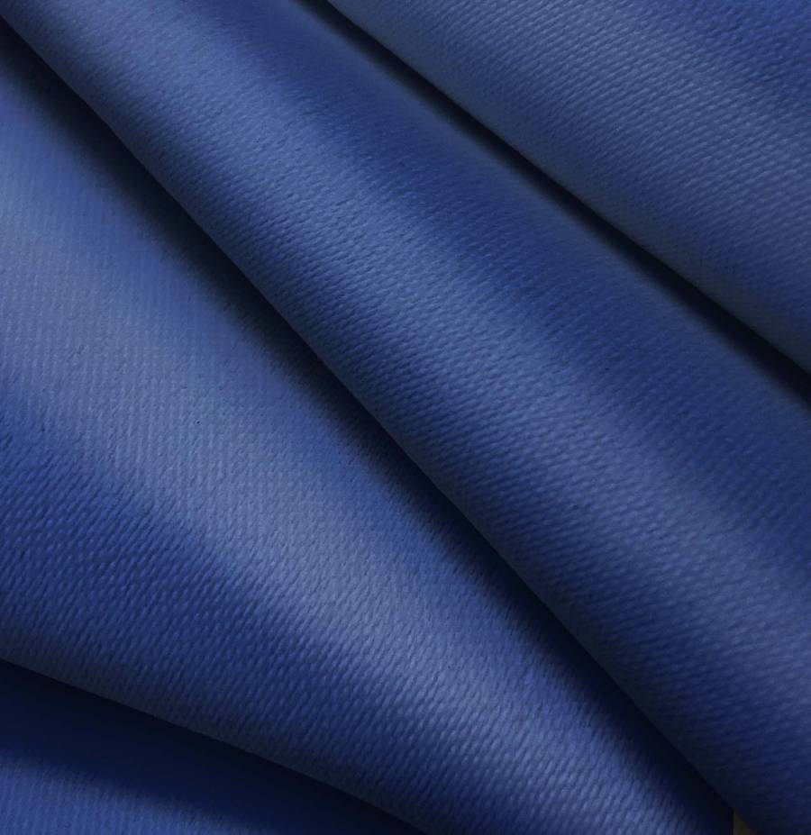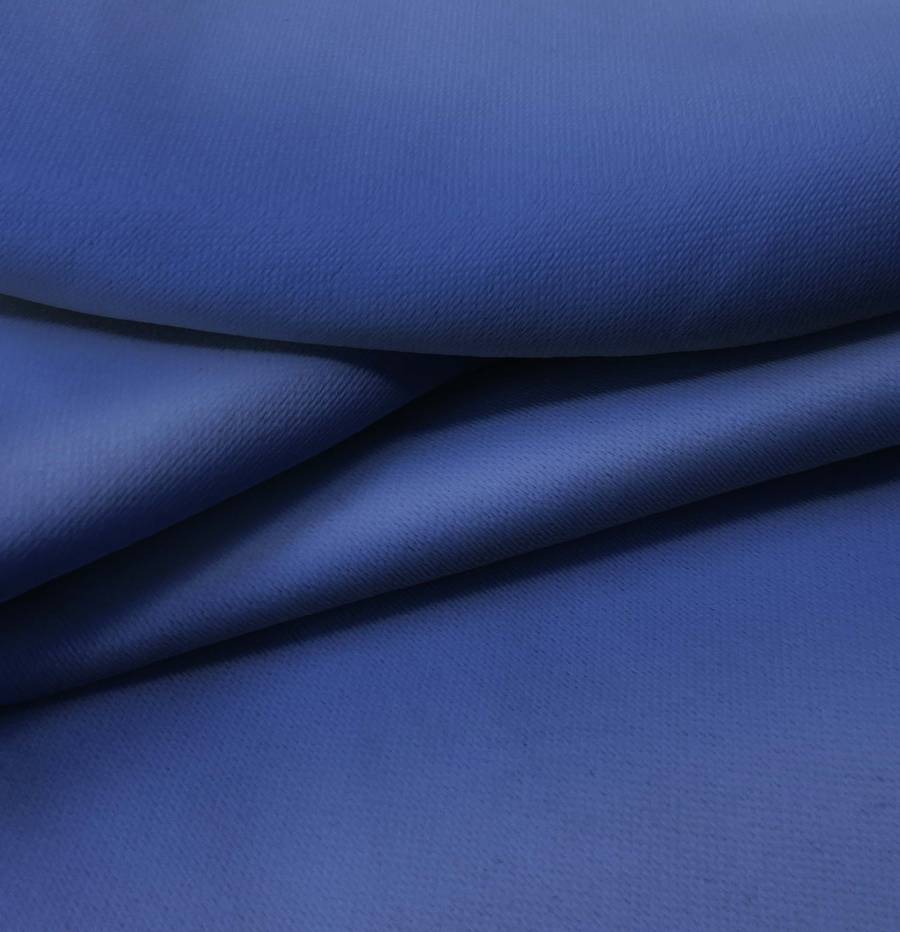 La tela base Lona Oscurante - White Out es de tejido técnico 100% poliéster con un gramaje de 218 gr/m2, ancho de 160 cm y color liso impreso en Azul Vaquero, con una combinación de tinta Cyan 100, Magenta 88, Yellow 30 y Black 15, reflejando un CMYK de 100 88 30 15. Este color secundario se caracteriza por su profundidad y tono vibrante, que combina especialmente bien con tonos neutros como el blanco, negro, gris y beige.