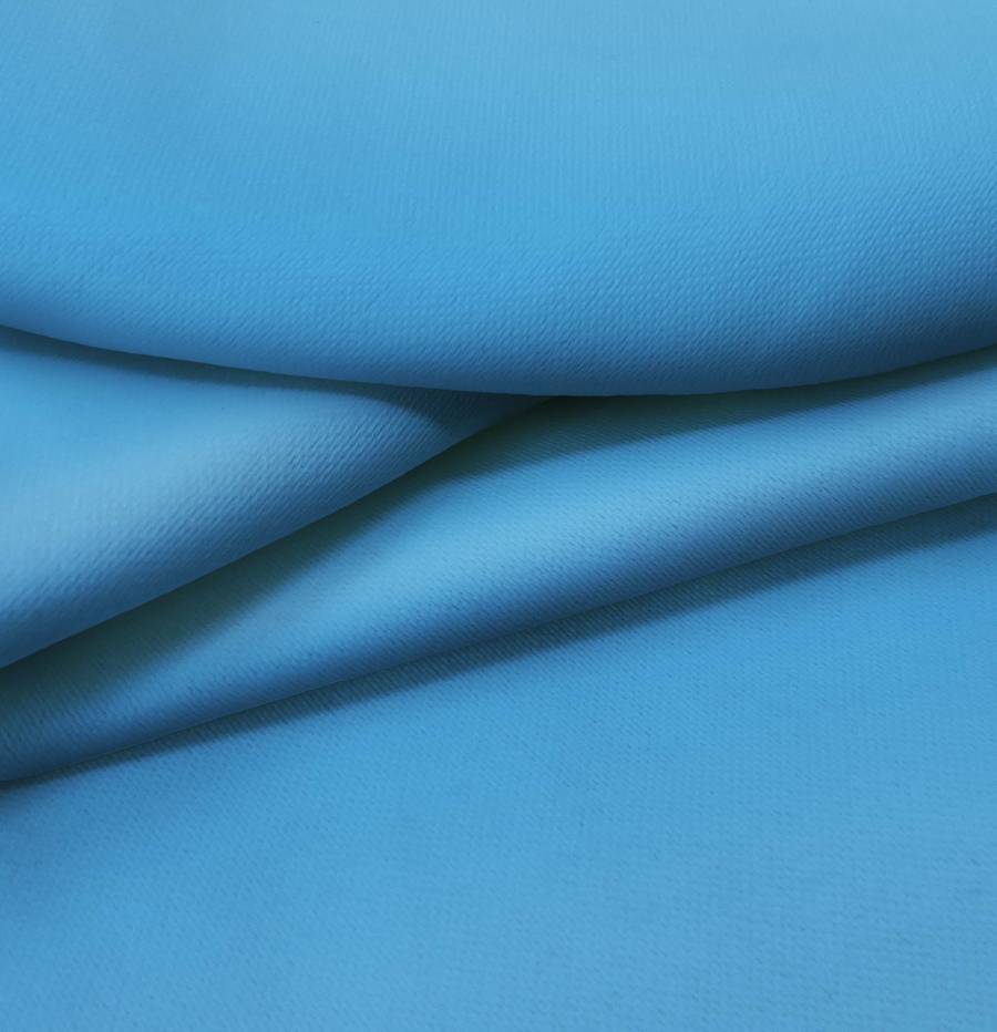 La Lona Oscurante - White Out es una tela de tejido técnico de poliéster con un color liso impreso en Azul Virgen, con un CMYK de 77 40 6 0. Este color secundario se describe como un azul intenso y brillante, que combina perfectamente con tonos neutros como el blanco o el gris.