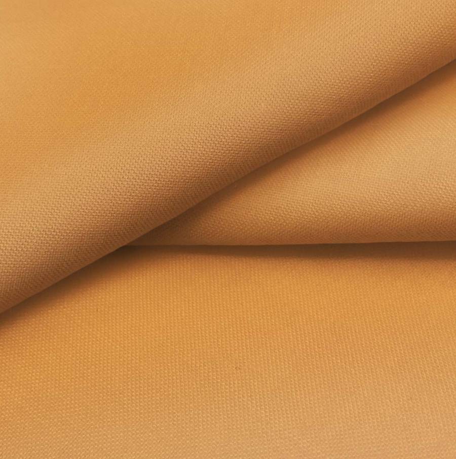 La tela base, Voile Ligero - Kyoto, es un tejido Voile de poliéster con un gramaje de 79 gr/m2, de textura suave, lisa y translúcida. El color impreso en este tejido es Naranja Calabaza, con una combinación de tintas CMYK de 15, 56, 80, 4. Este color secundario se destaca por su intensidad y calidez, combinando especialmente bien con tonos neutros como beige o gris.