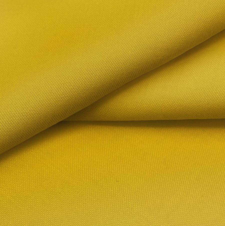La tela base, Voile Ligero - Kyoto, es de composición 100% poliéster, con un gramaje de 79 gr/m2 y un ancho de 148 cm. El color liso impreso es Marrón Caramelo, con una combinación de tintas Cyan 22, Magenta 41, Yellow 100 y Black 10 según el CMYK. Este color secundario simboliza la calidez y la elegancia, combinando especialmente bien con tonos neutros como beige, blanco y negro.