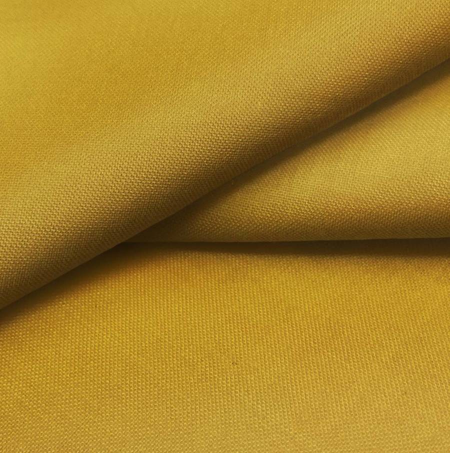 La tela base es Voile Ligero - Kyoto de 100% Poliéster, con un color liso impreso en tonos Marrón y Caramelo. El CMYK indicado nos muestra una combinación de 29% de Cyan, 45% de Magenta, 100% de Yellow y 21% de Black, lo que resulta en un color cálido y acogedor que combina bien con tonos neutros como beige, blanco y gris.