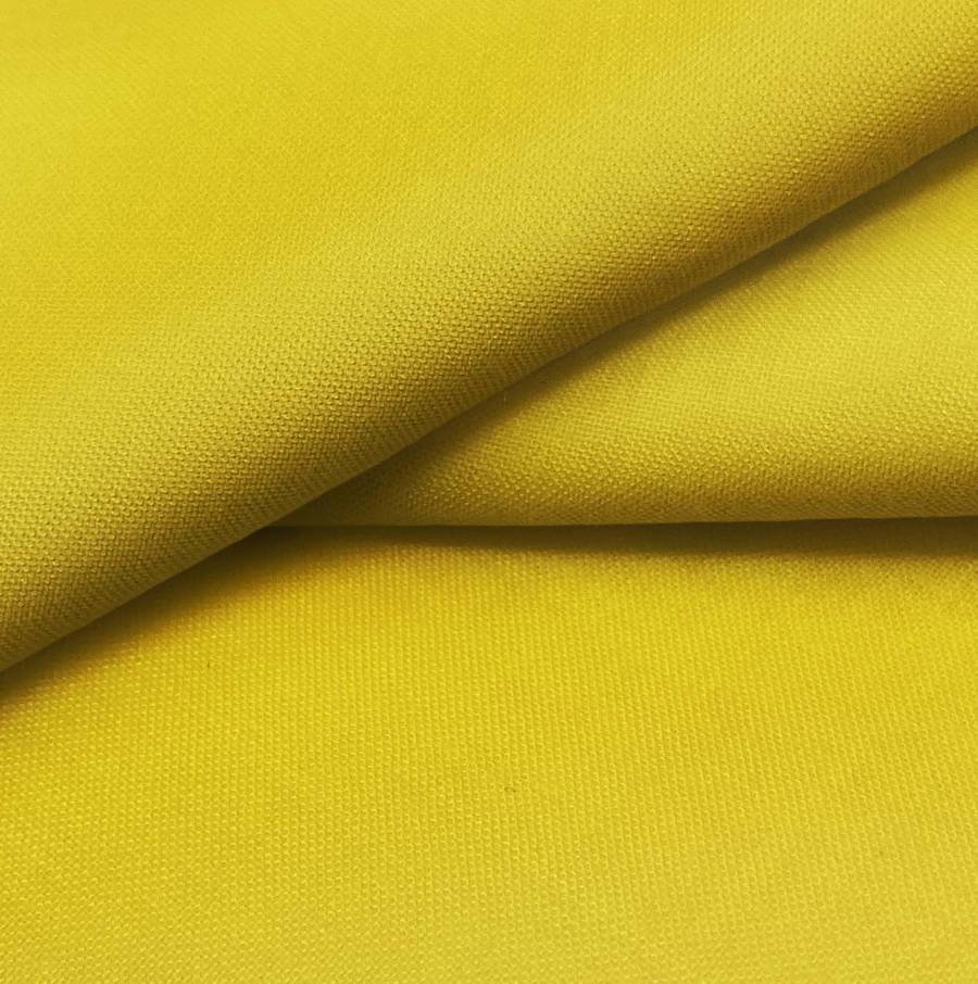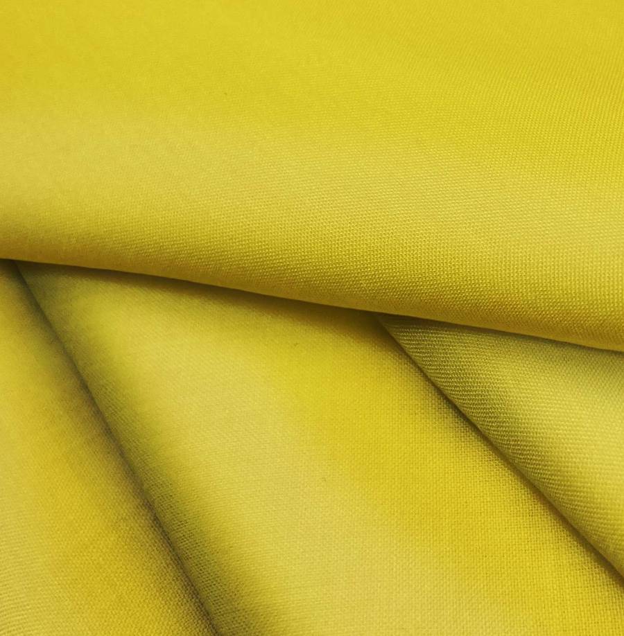 El tejido está impreso con este color liso a una sola cara por impresión digital textil, lo que le confiere una apariencia vibrante y duradera. La textura suave, lisa, delgada y translúcida de la tela base complementa perfectamente el color Amarillo Galleta, creando un conjunto elegante y versátil.
