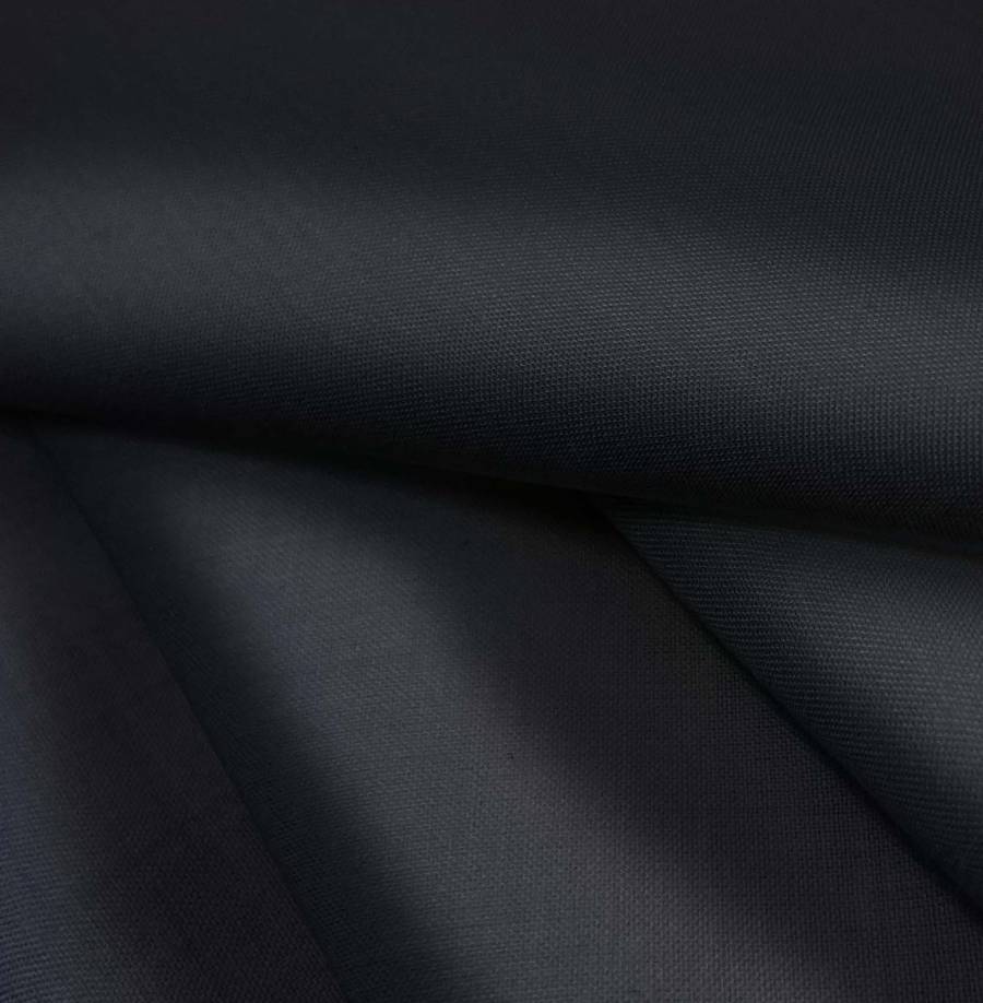 La tela base, Voile Ligero - Kyoto, es un tejido de poliéster suave y ligero en color negro noche (CMYK: 93 80 59 95). Este color transmite elegancia y sofisticación, combinando perfectamente con tonos neutros como el blanco, gris, plata y dorado.