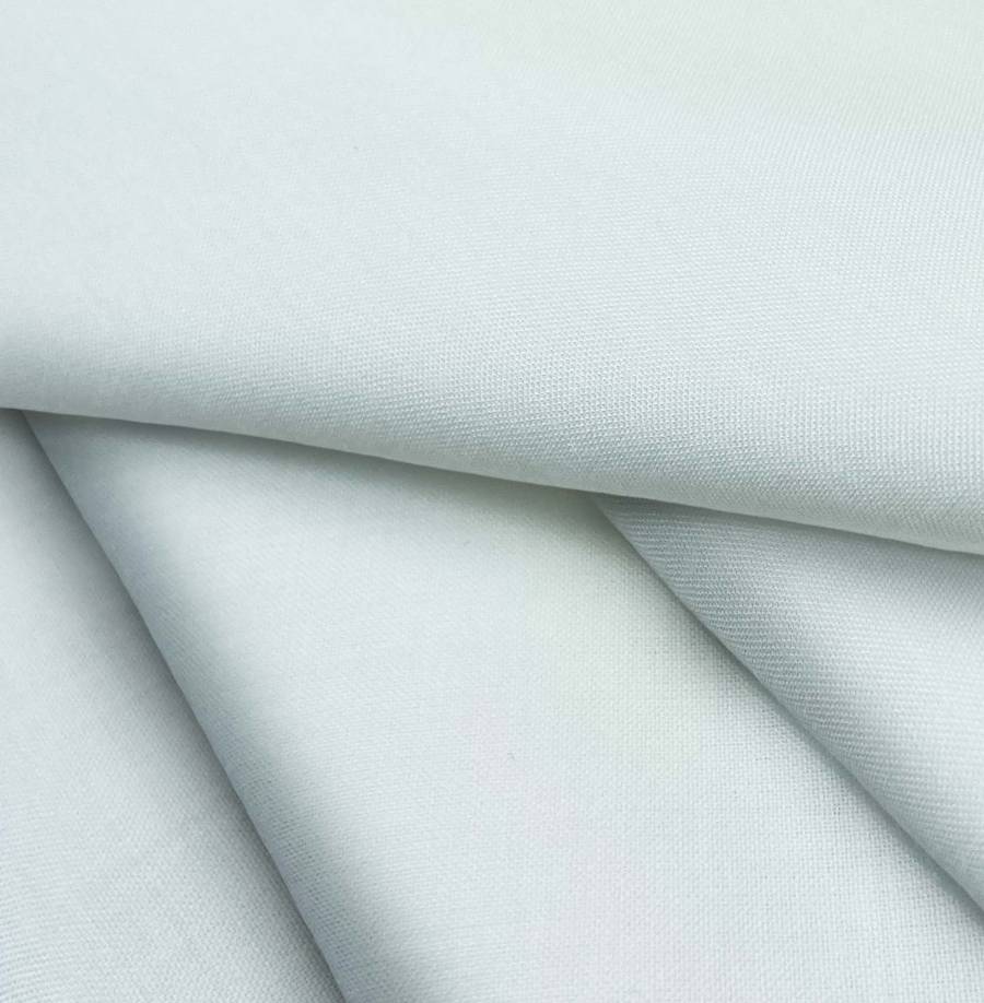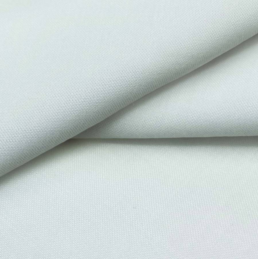 La tela base es un Voile Ligero de 100% poliéster, de color Azul Cian Opaco, con un CMYK de 20 3 14 0. Este color simboliza tranquilidad y frescura, combinando perfectamente con tonos neutros como blancos o grises.