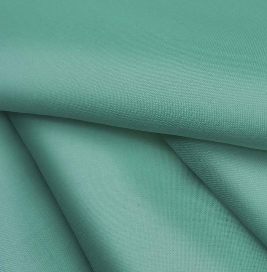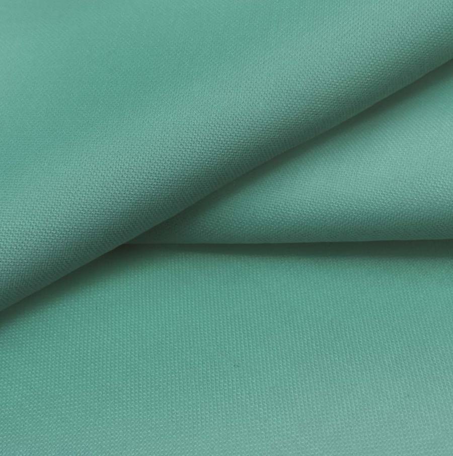 La tela base Voile Ligero - Kyoto es un tejido suave y translúcido de color verde menta oscuro, con tonos dominantes de cian, amarillo y una pizca de magenta en una proporción de 70-28-54-11 según el CMYK. Este color secundario combina especialmente bien con tonos neutros como blanco, gris claro y beige, resaltando su frescura y elegancia.