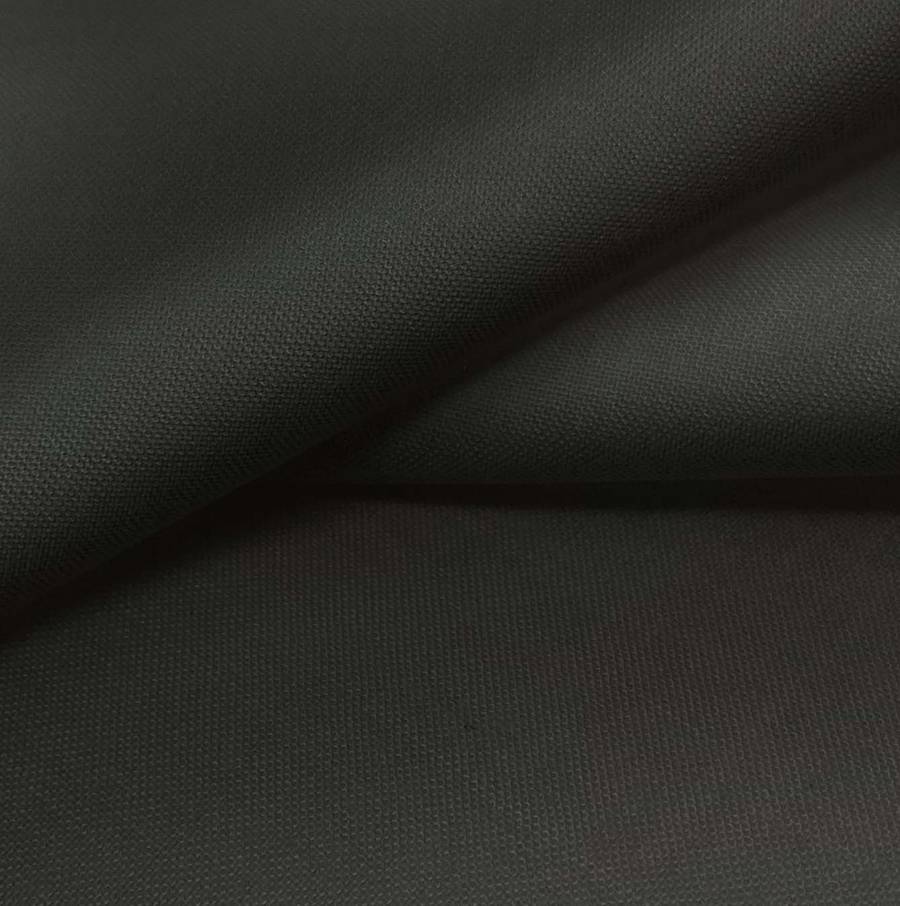 La tela base, Voile Ligero - Kyoto, es un poliéster translúcido y suave en color negro medianoche, con un CMYK de 72 65 75 84. Este color destaca por su elegancia y sofisticación, combinando perfectamente con tonos neutros como blanco, gris y plata.