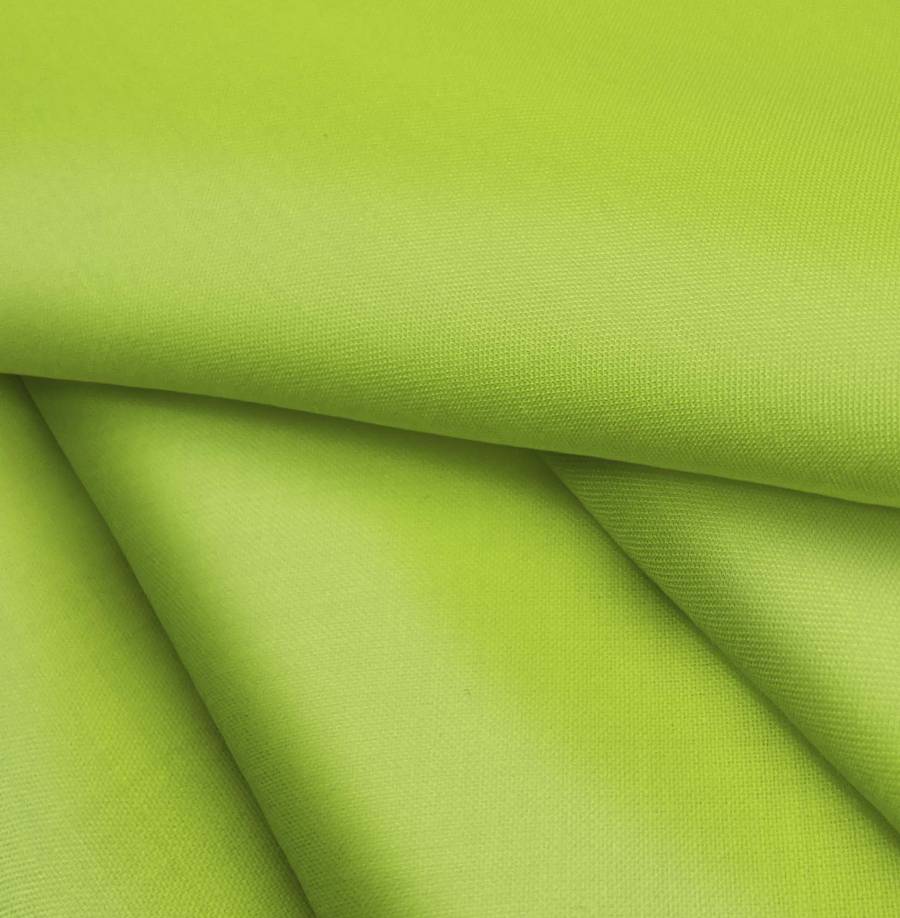 La tela base, Voile Ligero - Kyoto, es un tejido de poliéster de 79 gr/m2 con un ancho de 148 cm. El color liso impreso es Verde Pistacho, con una combinación CMYK de 49 8 94 0. Este color transmite frescura y vitalidad, combinando perfectamente con tonos neutros como blancos, grises y negros.