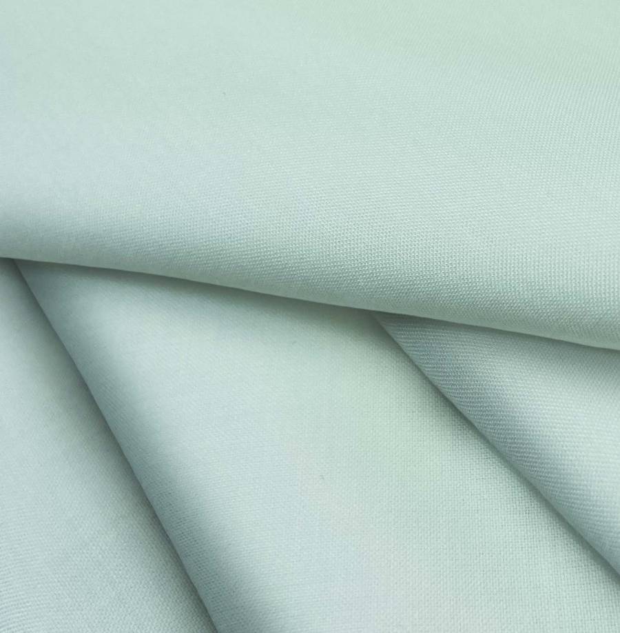 La tela base de Voile Ligero - Kyoto es de color verde, crema de menta, con un CMYK de 37 6 29 0. Este color transmite frescura y serenidad, perfecto para prendas de primavera/verano. Se combina especialmente bien con tonos neutros como blanco, gris y beige, así como con colores más intensos como el azul marino o el mostaza.
