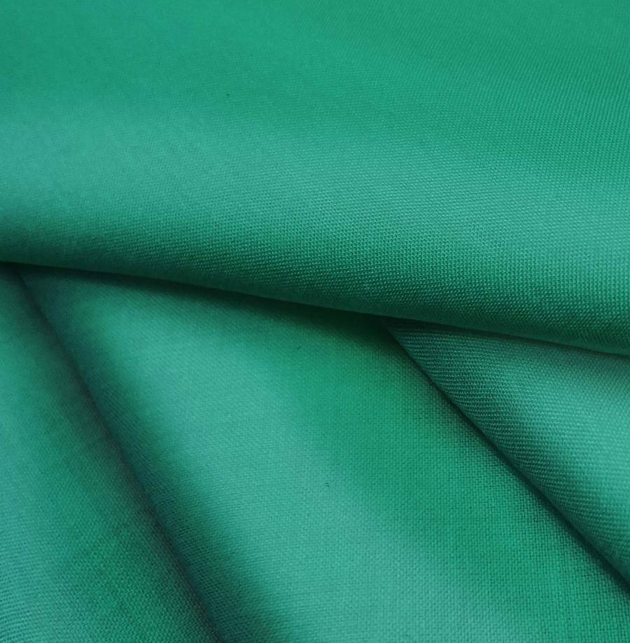 La tela base, Voile Ligero - Kyoto, tiene un color liso impreso en verde oscuro con tonos de mar profundo, representado por un CMYK de 88 31 74 22. Este color evoca la profundidad y misterio del océano, combinando a la perfección con tonos tierra y neutros.