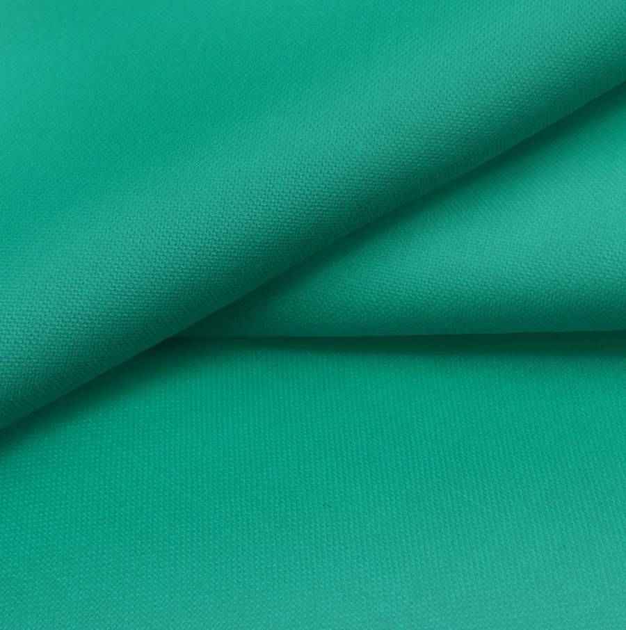 La tela base, Voile Ligero - Kyoto, es ligera, suave al tacto y translúcida, ideal para prendas de vestir como blusas, vestidos y pareos, así como para textiles de hogar como cortinas, manteles y caminos de mesa. Por otro lado, el color verde menta oscuro impreso en la tela le da un toque de elegancia y sofisticación, perfecto para la primavera y el verano.