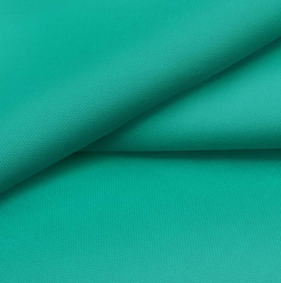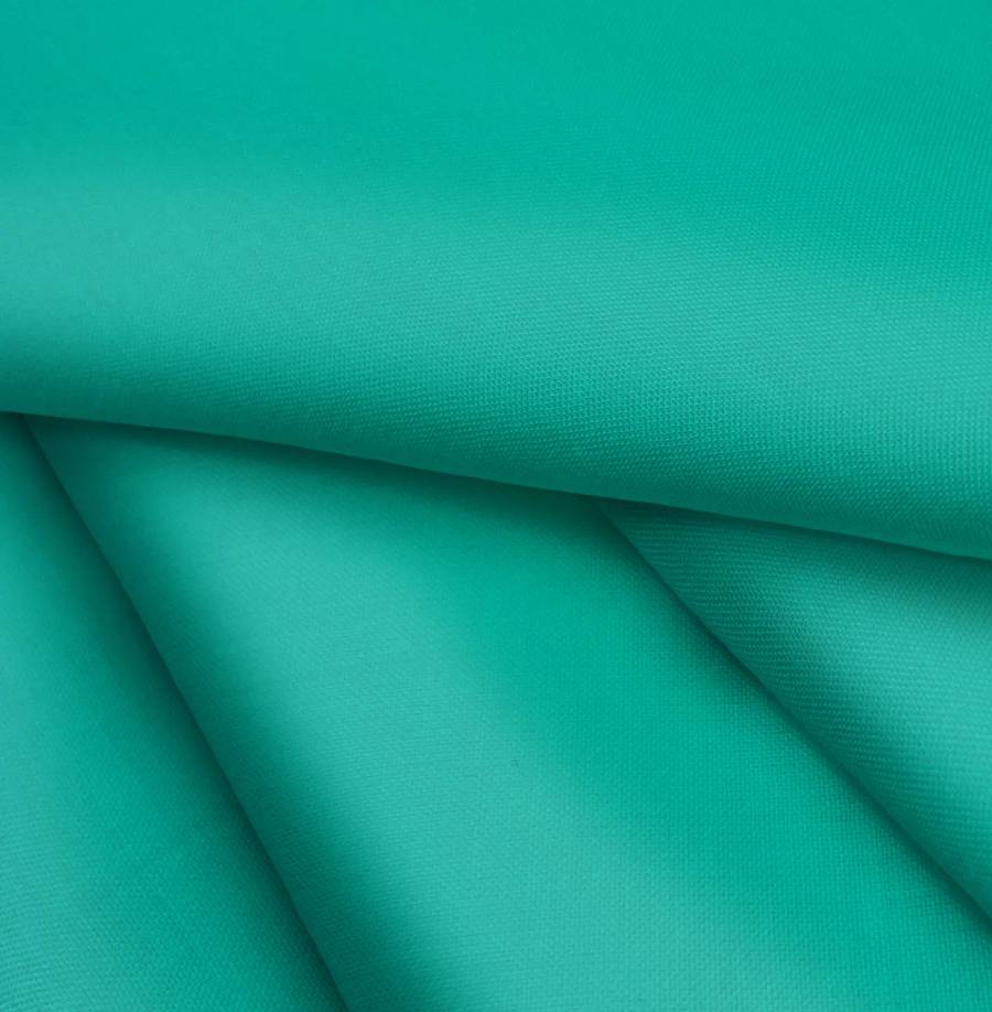 La tela base es Voile Ligero - Kyoto, un tejido de poliéster suave y ligero en color verde menta oscuro, con una composición de CMYK de 82 18 58 3. Este color transmite frescura y elegancia, combinando perfectamente con tonos neutros como blanco, beige y gris.