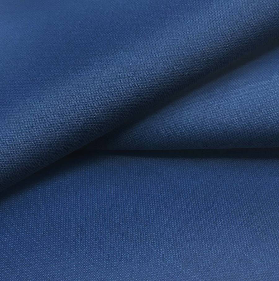 La tela base, Voile Ligero - Kyoto, es un poliéster transparente de 79 gr/m2 con un ancho de 148 cm. El color liso impreso es Azul Profundo, con una combinación de CMYK de 100 80 36 25, lo que le da un tono intenso y vibrante que se combina perfectamente con colores neutros como el blanco y el gris para resaltar su profundidad y elegancia.