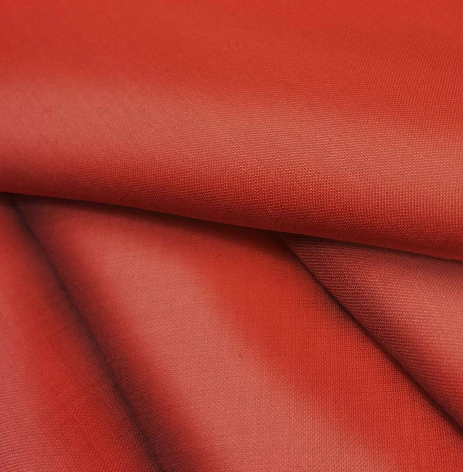 La tela base Voile Ligero - Kyoto es de composición 100% poliéster, con un gramaje de 79 gr/m2 y un ancho de 148 cm. El color liso impreso es un Rojo Ladrillo Refractario, con un CMYK de 23 97 100 19. Este color secundario es profundo y cálido, ideal para crear ambientes acogedores y elegantes. Combina perfectamente con tonos neutros como beige, blanco y negro.
