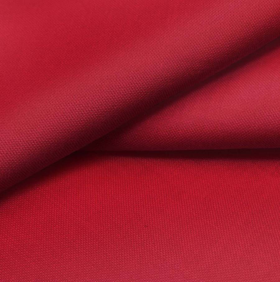 La tela base es un Voile Ligero - Kyoto en color rojo carmín, con un CMYK de 26 100 91 28. Este color transmite pasión y energía, se asocia con la fuerza y la vitalidad. Combina especialmente bien con tonos neutros como blanco, negro y gris, así como con tonos cálidos como naranja y amarillo.