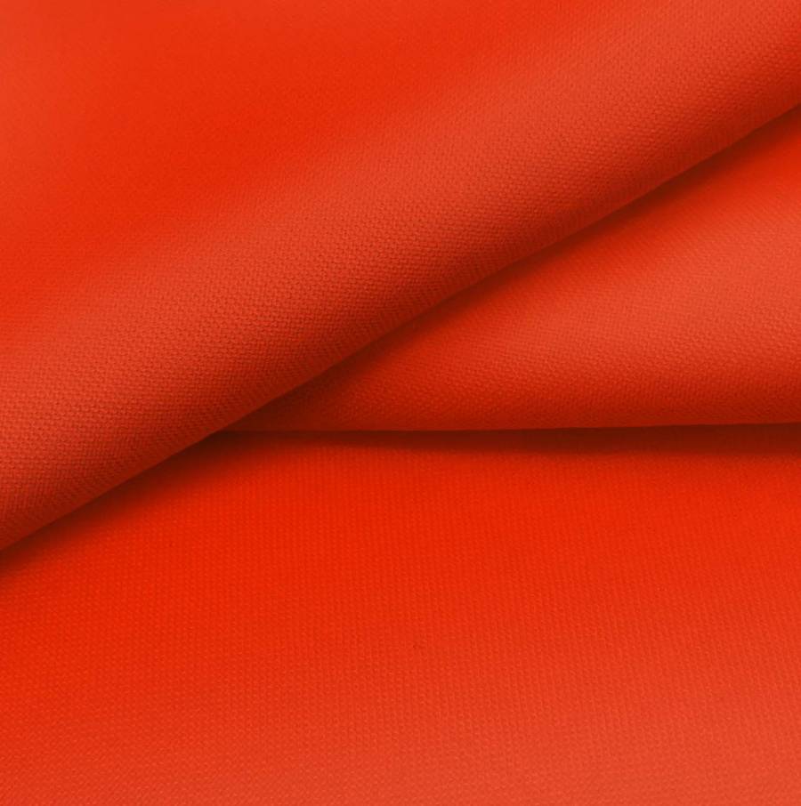 La tela base Voile Ligero - Kyoto es de poliéster, con un gramaje de 79 gr/m2 y un ancho de 148 cm. El color liso impreso es Rojo Annato oscuro, con un CMYK de 0 93 100 0. Este color secundario es un rojo intenso con tonos cálidos y profundos que combina especialmente bien con tonos neutros como blancos, negros y grises, así como con tonos tierra como marrones y beige.