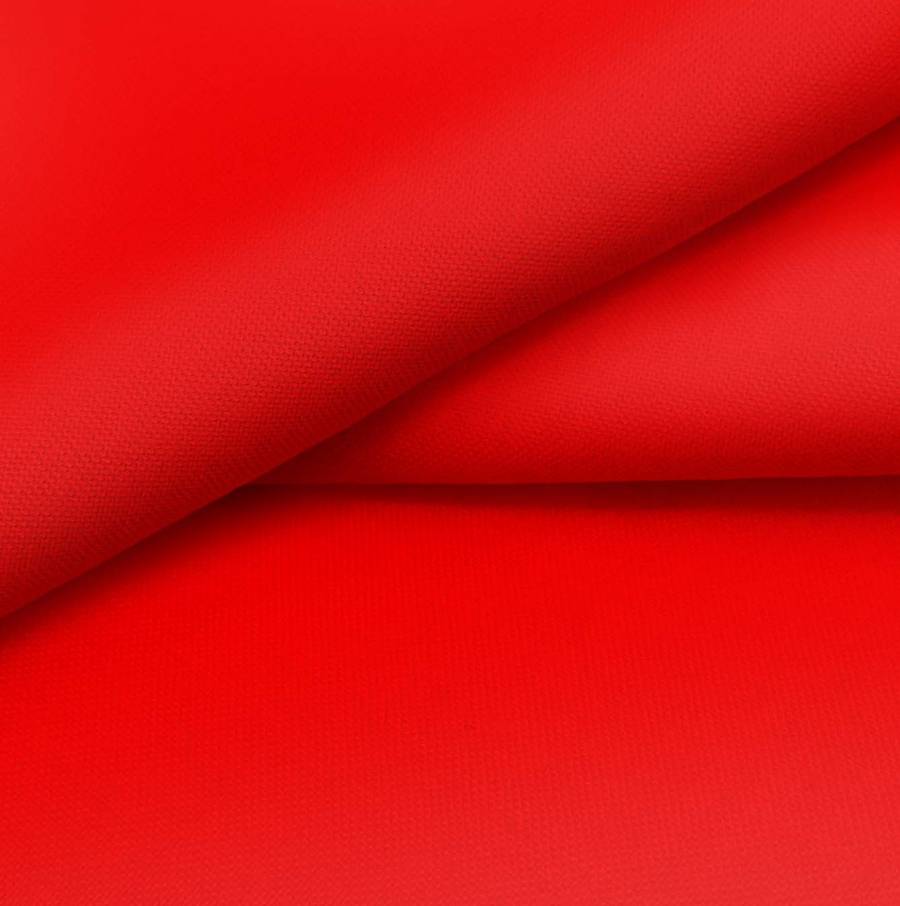 La tela base de la Voile Ligero - Kyoto es un tejido Voile de 100% poliéster de color rojo neón, con un CMYK de 0 95 91 0. Este color vibrante representa la pasión y la energía, siendo ideal para prendas de moda que buscan destacar.