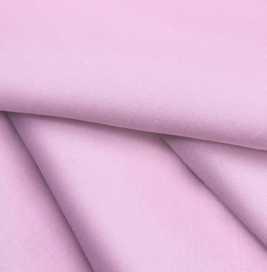 La tela base, Voile Ligero - Kyoto, es un tejido de 100% poliéster, ligero y translúcido, con un color liso impreso en tono rosa claro caliente, con un CMYK de 0 40 0 0. Este color secundario, al ser un rosa claro con un toque cálido, transmite sensaciones de dulzura y calidez, perfecto para prendas de moda femenina y decoración del hogar. Combina especialmente bien con tonos neutros como blanco, gris y beige.