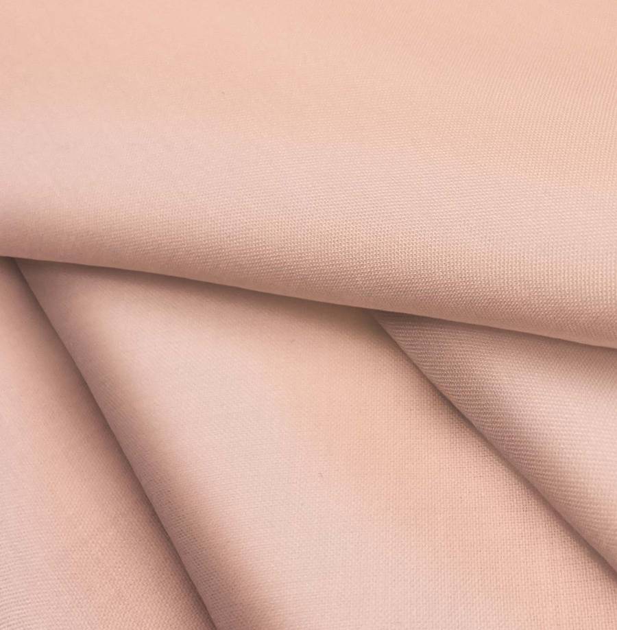 La tela base de este tejido es Voile Ligero - Kyoto, con composición de 100% poliéster y un peso de 79 gr/m2. El color liso impreso es Rosa, con una mezcla de tintas CMYK de 0 41 38 0. Este color ofrece una sensación de calidez y feminidad, combinando de manera armoniosa con tonos neutros como blancos y grises, así como con colores más intensos como el azul marino o el verde oscuro.