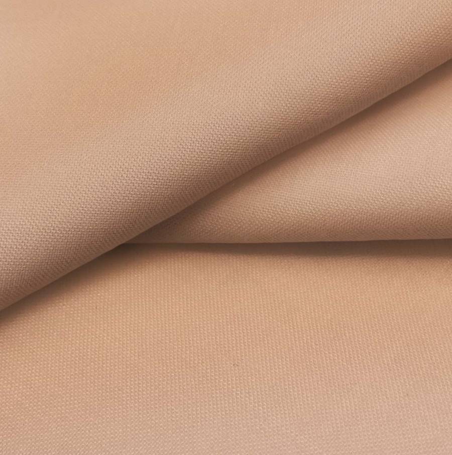La tela base de esta composición es Voile Ligero - Kyoto, un tipo de tela Voile de 100% poliéster con un gramaje de 79 gr/m2 y un ancho de 148 cm. El color liso impreso en esta tela es Marrón Arenisca, con una combinación de tintas Cyan: 19, Magenta: 47, Yellow: 54, Black: 7 y un perfil CMYK de 19 47 54 7. Este color secundario simboliza la elegancia, la conexión con la naturaleza y la calidez. Combina en particular con tonos neutros como beige, crema y blanco.