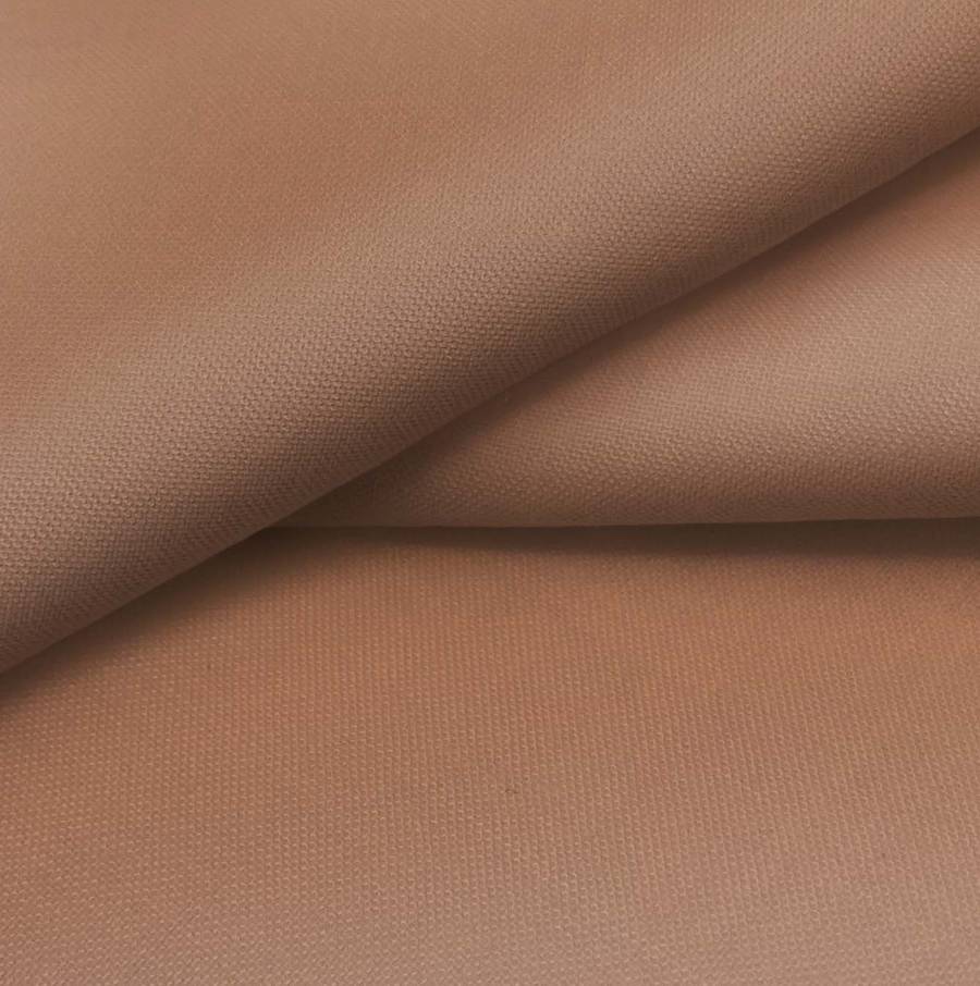 La tela base Voile Ligero - Kyoto es un poliéster suave y translúcido, impreso con un color marrón barro arcilloso. El color se logra con una combinación de tintas cuyos valores son: Cyan 32, Magenta 56, Yellow 63, Black 32 en el modelo CMYK. Este color evoca la calidez de la tierra y combina perfectamente con tonos neutros y cálidos.