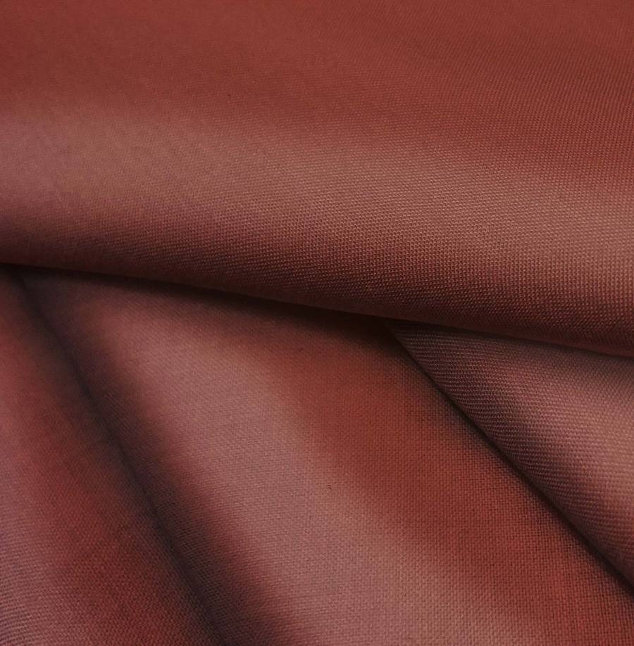 La tela base Voile Ligero - Kyoto es de poliéster, con un gramaje de 79 gr/m2 y un ancho de 148 cm. El color liso impreso es Marron Caput Mortuum, con una composición CMYK de 38 89 86 60. Este color secundario es un tono marrón oscuro y profundo, que simboliza elegancia y sofisticación. Combina especialmente con colores neutros como blanco, beige, o crema, así como con tonos dorados o cobrizos para crear contraste.