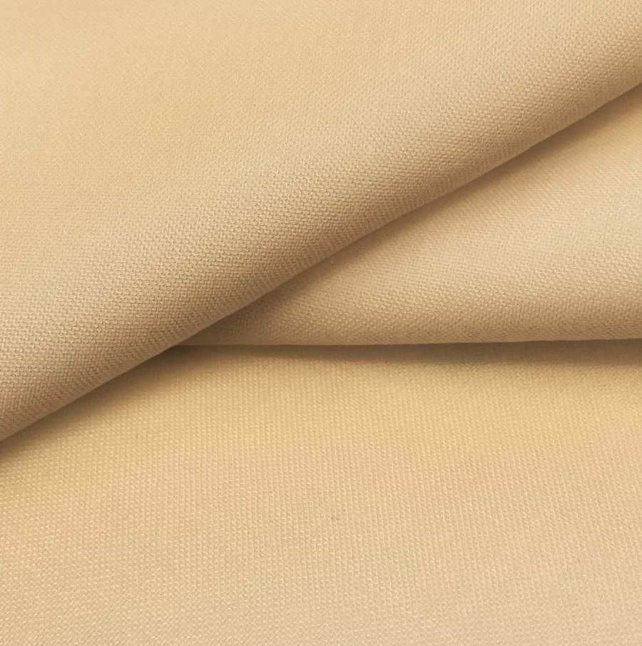 La tela base, Voile Ligero - Kyoto, es de composición 100% poliéster y presenta un color liso impreso en tonos marrón y caramelo, con un CMYK de 7 33 56 1. Este color secundario simboliza la elegancia, la calidez y la estabilidad, combinando a la perfección con tonos neutros como blanco, beige y gris.