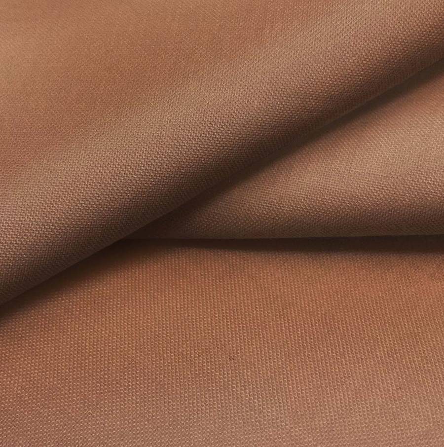 La tela base Voile Ligero - Kyoto es de poliéster, suave y translúcida. El color liso impreso es Marrón Chocolate con leche (CMYK: 33 60 70 37), combina especialmente con tonos tierra y neutros. El tejido está impreso a una sola cara por impresión digital textil.