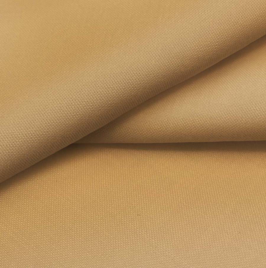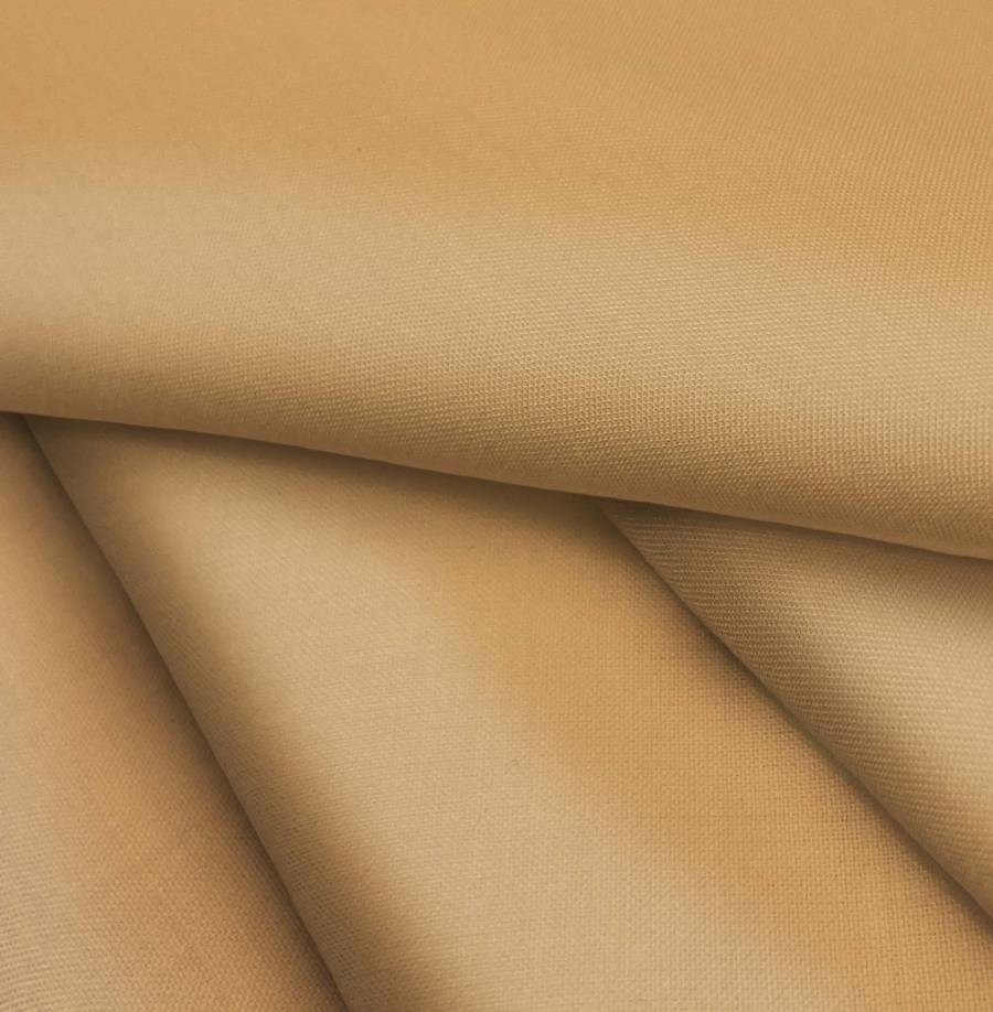 La tela base Voile Ligero - Kyoto es de color liso impreso en tonos marrón y avellana, con una mezcla de CMYK de 24 47 71 14. Este color simboliza la calidez y la naturaleza, combina especialmente con tonos tierra y neutros. El tejido está impreso a una sola cara por impresión digital textil, lo que le otorga una apariencia vibrante y duradera.