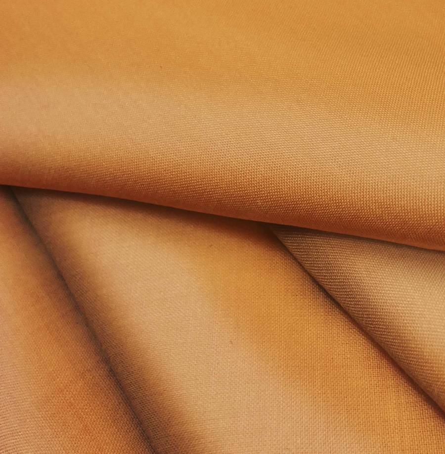 La tela base Voile Ligero - Kyoto es de color marrón y ruddy, con una composición de 100% poliéster. El color liso impreso tiene un CMYK de 21 65 91 11, creando un tono profundo y cálido. Combina especialmente bien con tonos neutros como beige y blanco.